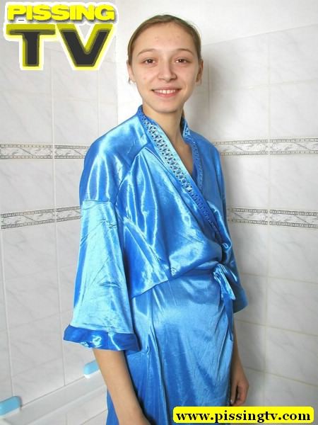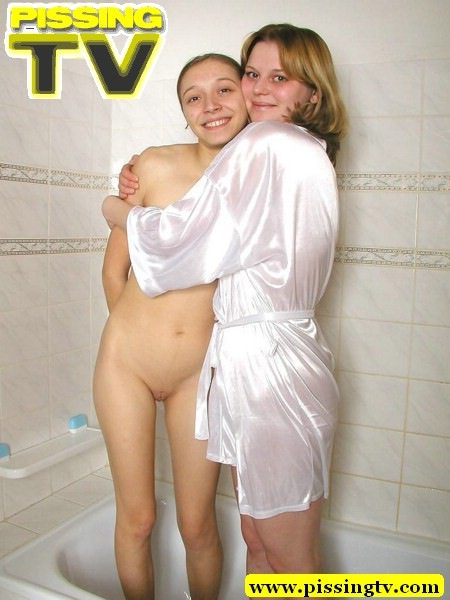 Young blonde lesbians undressing each other and pissing in bath